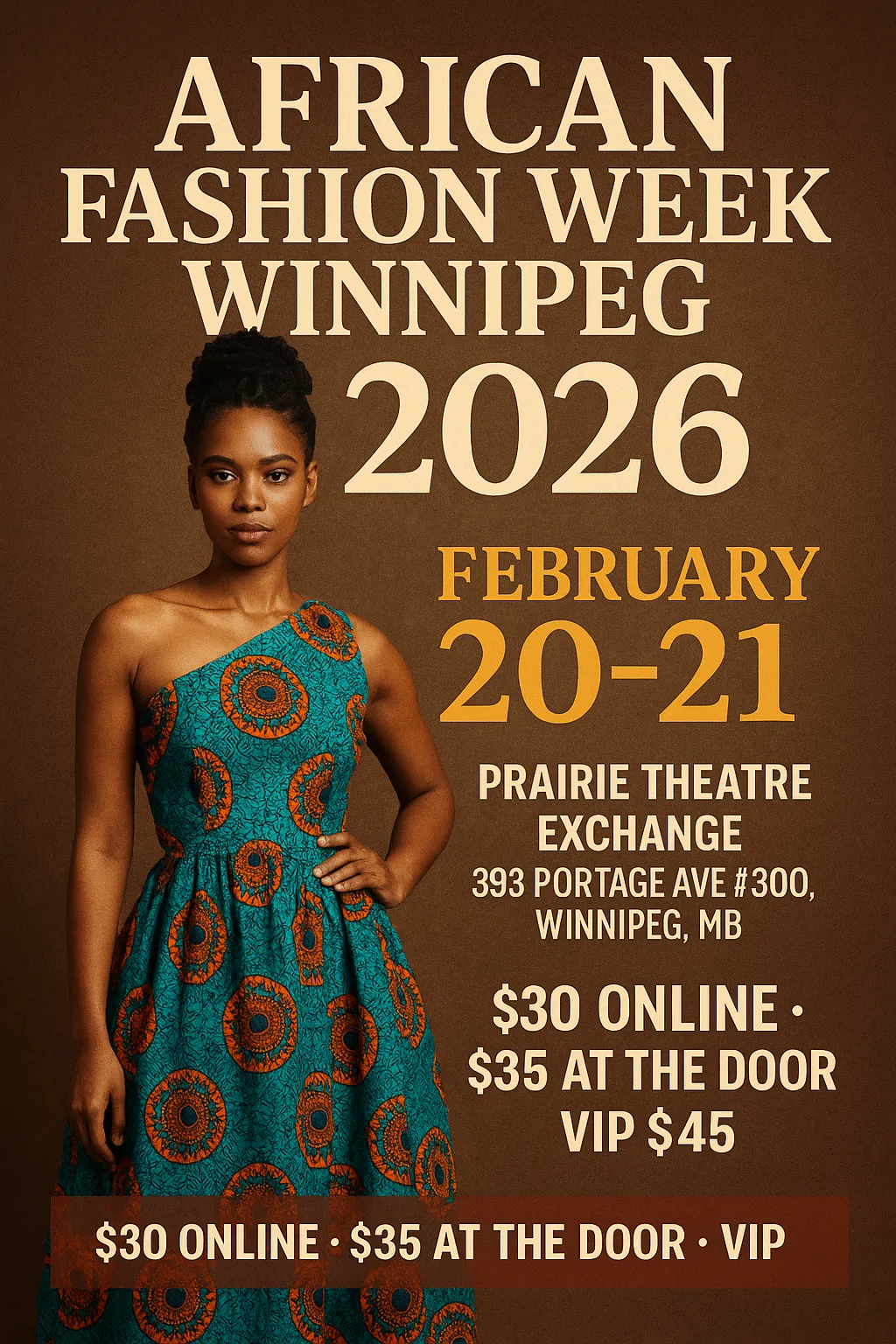"Welcome to African Fashion Week Winnipeg 2026! Join us on February 20-21st, 2026, as we celebrate African fashion, art, and culture in the heart of Winnipeg. Explore a vibrant showcase of local and international designers, performers, and creators. Embrace diversity, heritage, and creativity in our beautiful sunshine city—Peg City."